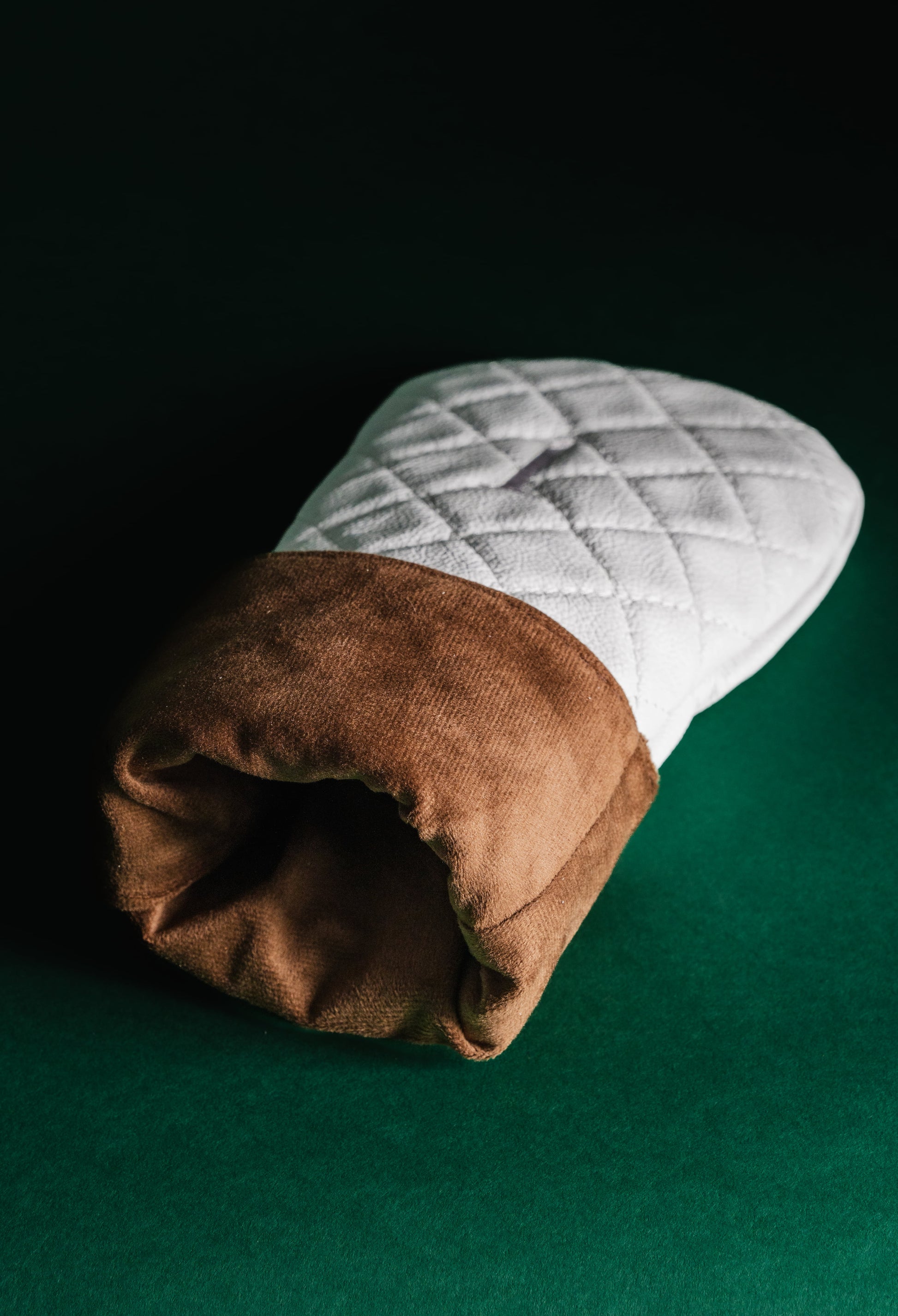 Pure and precise, Glacier White brings a modern refinement to the course. Crafted from genuine South African leather with our diamond cross-stitch design, it’s finished with pearl-like embroidery that catches the light with subtle elegance. Inside, a rich brown felt lining adds warmth and timeless sophistication, while structured padding provides protection without compromising style.